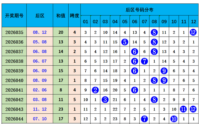 大乐透第2026044期出奖号统计:前区03、08、22、26、29,后区07、10。和值88,012路比1:1:3,冷热比1:4,未开出连号。